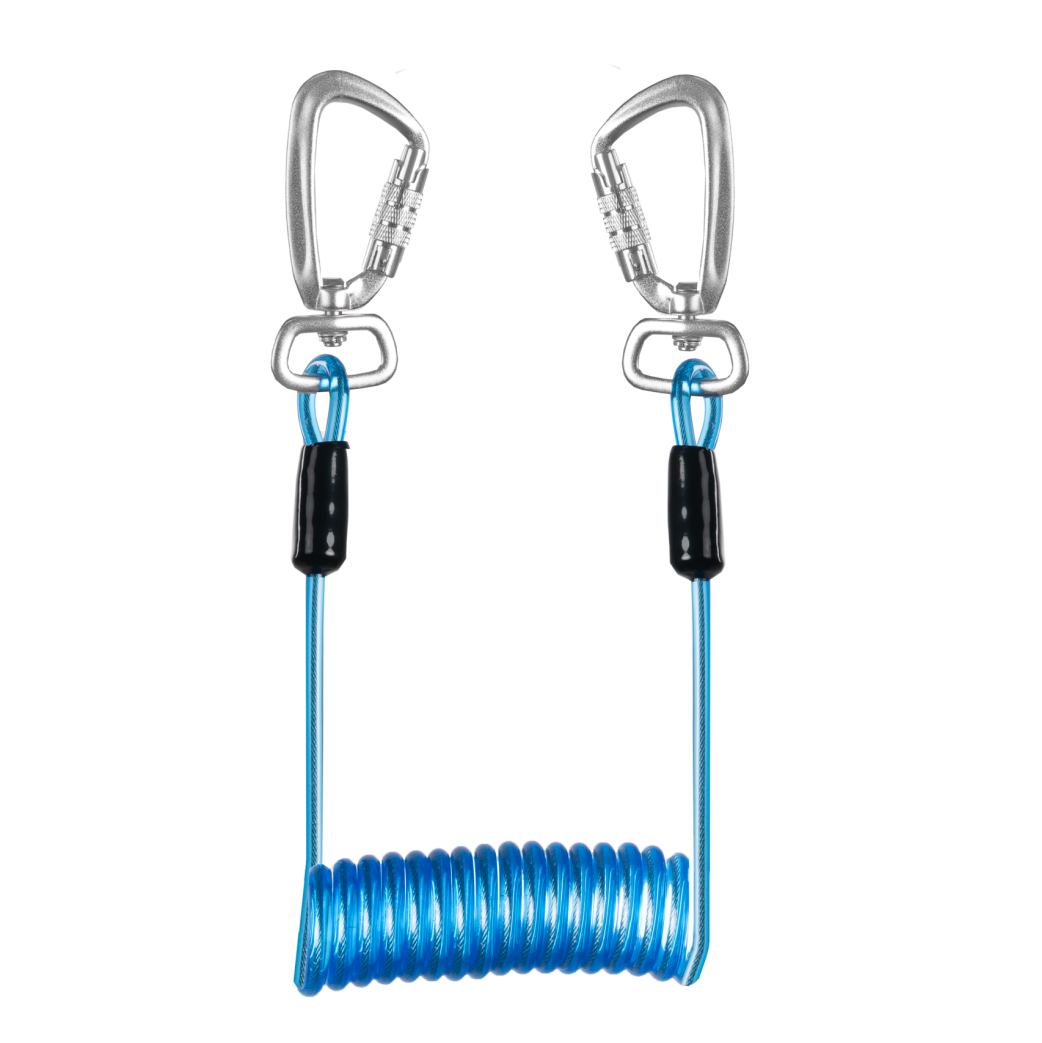 Portaherramientas de cable espiral recubierto de plastico de 45-170 cm con mosqueton en sus extremos