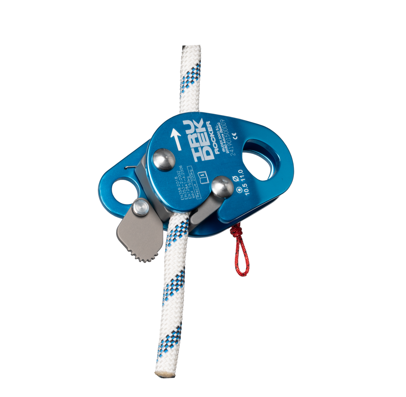 Kit de Linea de vida vertical con cuerda semiestática, sujetador Rocker y dos mosquetones.
