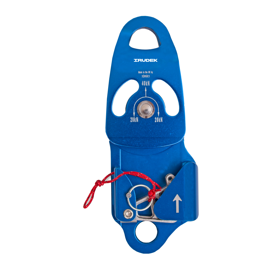 Polea antirretorno bidireccional de aluminio para cuerda de 10-13 mm.